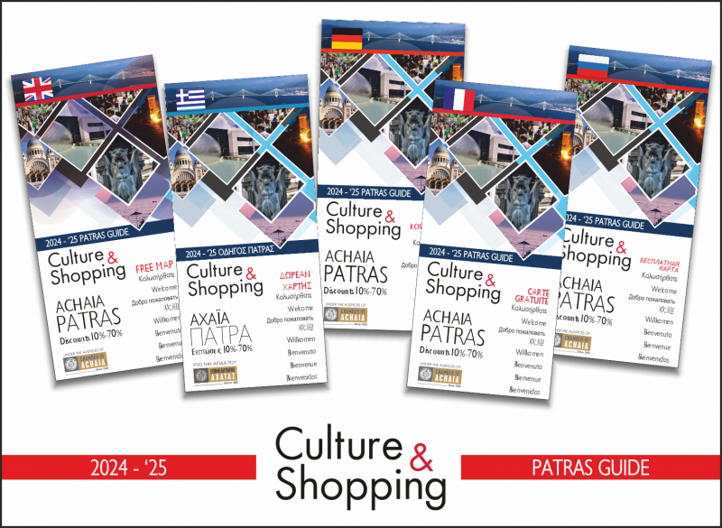 Υπενθυμίζεται ότι στον επίσημο χάρτη του Culture & Shopping περιλαμβάνεται πλήρης οδηγός για τα αξιοθέατα της Πάτρας, καθώς επίσης προτάσεις για ψυχαγωγία και αγορές στα καταστήματα της πόλης και αναλυτικά οι εκδηλώσεις που εξελίσσονται καθ’ όλη τη διάρκεια του χρόνου στην Αχαΐα.