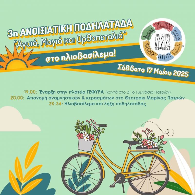 3η Ανοιξιάτικη Ποδηλατάδα – «Αγυιά, Μαγιά και Ορθοπεταλιά… με ηλιοβασίλεμα»