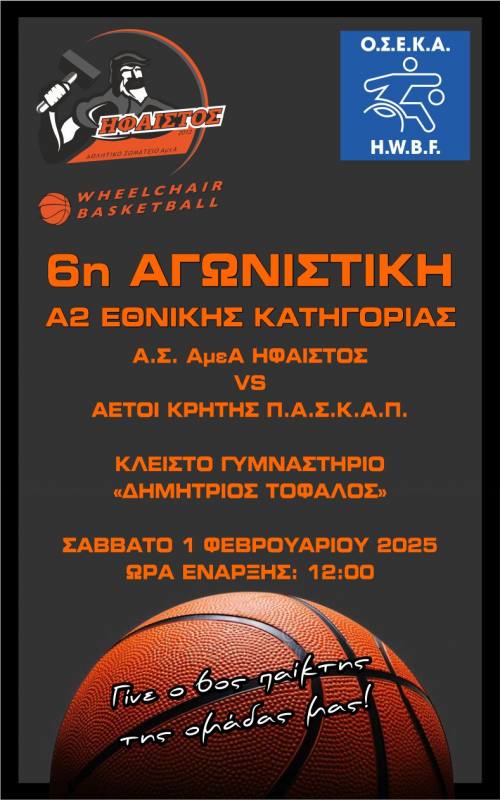 6η Αγωνιστική του Πανελληνίου Πρωταθλήματος Μπασκετ με Αμαξίδιο της Α2 εθνικής κατηγορίας