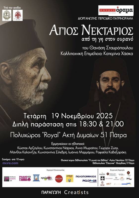 «Άγιος Νεκτάριος – Από τη γη στον ουρανό» – δύο μοναδικές παραστάσεις στην Πάτρα στις 19 Νοεμβρίου 2025