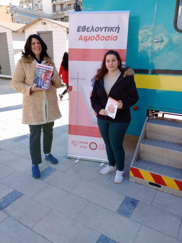 Πολύτιμη στην αιμοδοτική δράση ήταν η συμβολή των εθελοντών που μοίρασαν φυλλάδια και ενημέρωναν τον κόσμο που εκείνη την ώρα περνούσε από το σημείο της αιμοδοσίας.