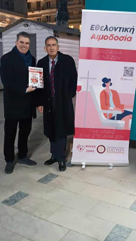 Στέφθηκε με απόλυτη επιτυχία η πρώτη αιμοδοτική δράση του πανελλαδικού περιοδικού «πατρινόραμα» σε συνεργασία με το Σ.Ε.Α. Καραμανδανείου Νοσοκομείου Παίδων Πατρών «Άγιος Στυλιανός» (καθώς ιθύνων νους και πρωτεργάτης σταθερή αξία σε κάθε αιμοδοτική δράση είναι ο κος Λευτέρης Πολυκρέτης), του συλλόγου αιμοδοτών φοιτητών του Πανεπιστημίου Πατρών “Φλέβα Ζωής” η οποία χτυπά δυνατά και χαρίζει ζωή στην κοινωνία της Πάτρας και όχι μόνο χάριν στην πολύτιμη συμβολή της γιατρού αιματολόγου Ματίνας Κούγελου και του πρύτανη Πανεπιστημίου Πατρών Χρήστου Μπούρα , ο οποίος άνοιξε την αγκαλιά του Πανεπιστημίου προς την κοινωνία, κάνοντας την εξωστρέφεια από ευχή πράξη, και του “Κέντρου Αίματος” ΠΓΝΠ.