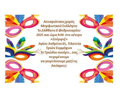 Home ΕΚΔΗΛΩΣΕΙΣ Αποκριάτικος Χορός Μορφωτικού Συλλόγου Κυριών Πατρών στο “Ζούρφιξ”Patrinorama Magazine·3 Φεβρουαρίου, 2025ΕΚΔΗΛΩΣΕΙΣΠολιτισμός·0 Comments·1 min read·0 Πληροφορίες – κρατήσεις στη γραμματεία του Συλλόγου ( 2610 227509)