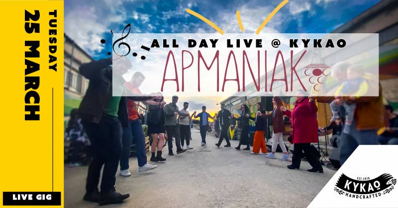 Οι αγαπημένοι Αρμανιάκ επιστρέφουν σε ένα πανηγυρικό live στην Κυκάω την Τρίτη 25 Μαρτίου! Με την Μαίρη Δεναξά στο τραγούδι, την Γεωργία Μαρίνη στο βιολί, την Αγγέλικα Παπανικολάου στο ακορντεόν και τον Ιάσονα Παππούλη στο λαούτο και στο τραγούδι το γλέντι προμηνύεται φωτιά!