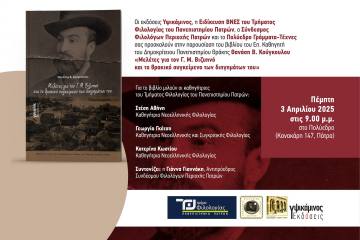 Παρουσίαση βιβλίου «Μελέτες για τον Γ.Μ. Βιζυηνό και το θρακικό συγκείμενο των διηγημάτων του» στο Πολύεδρο Patrinorama Magazine·29 Μαρτίου, 2025Παρουσιάζεται στο Πολύεδρο την Πέμπτη 3 Απριλίου, στις 9 το βράδυ, το βιβλίο «Μελέτες για τον Γ.Μ. Βιζυηνό...ΕΚΔΗΛΩΣΕΙΣΠολιτισμός