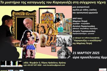 To μυστήριο της καταγωγής του Καραγκιόζη στη σύγχρονη τέχνη, στο Ηράκλειο της Κρήτης. Patrinorama Magazine·14 Μαρτίου, 2025Από την Μαρίνα Πετρή, τον Αντώνη Περαντωνάκη και τον Αντρέα Τυμπακιανάκη στο φινάλε της έκθεσης «Καραγκιόζης ο Νεοέλληνας»...ΕΚΔΗΛΩΣΕΙΣΠολιτισμός
