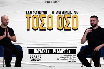 Ηλίας Φουντούλης – Άγγελος Σπηλιόπουλος “Τόσο Όσο” στο Θέατρο Πάνθεον Patrinorama Magazine·10 Μαρτίου, 2025Παρασκευή 14/03Θέατρο Πάνθεον – Πάτρα Ώρα: 21:00 ΤΟΣΟ ΟΣΟΌταν ο Άγγελος και ο Ηλίας γνωρίστηκαν, ήταν Τρίτη απόγευμα...ΕΚΔΗΛΩΣΕΙΣ