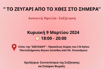 Aνοιχτή ομιλία – συζήτηση «Το ζευγάρι από το χθες στο σήμερα» στον Ι.Ν. Αγίου Παντελεήμονα στο Αίγιο Patrinorama Magazine·4 Μαρτίου, 2025Η Εθελοντική Ομάδα «ΔΙΕΞΟΔΟΣ» Αιγίου του Κέντρου Πρόληψης των Εξαρτήσεων και Προαγωγής της Ψυχοκοινωνικής Υγείας Π.Ε. Αχαΐας ΚΑΛΛΙΠΟΛΙΣ...Δυτική ΕλλάδαΕΚΔΗΛΩΣΕΙΣΠολιτισμός