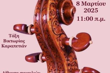Συναυλία σπουδαστών της Σχολής Βιολιού της Φιλαρμονικής Εταιρίας Ωδείο Πατρών Patrinorama Magazine·4 Μαρτίου, 2025Συναυλία σπουδαστών της Σχολής Βιολιού τάξης καθηγήτριας Βικτωρίας Καραπετιάν Σάββατο 08 Μαρτίου 2025, 11.00π.μ. Είσοδος ελεύθερη Το Σάββατο...ΕΚΔΗΛΩΣΕΙΣΠολιτισμός