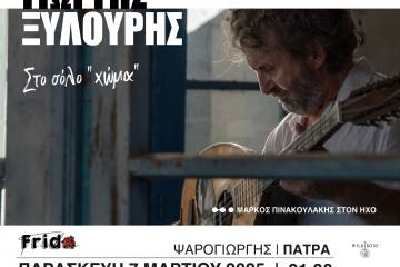 Γιώργης Ξυλούρης (Ψαρογιώργης) στη Frida Patrinorama Magazine·3 Μαρτίου, 2025Ο Γιώργης Ξυλούρης (Ψαρογιώργης) παρουσιάζει με το Μάρκο Πινακουλάκη στον ήχο και τις ηχητικές παρεμβάσεις το σόλο “Χώμα”....ΕΚΔΗΛΩΣΕΙΣ