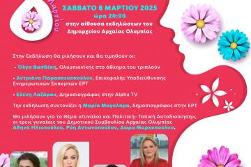 Ο Δήμος Αρχαίας Ολυμπίας διοργανώνει τιμητική εκδήλωση για τη Παγκόσμια Ημέρα της Γυναίκας Patrinorama Magazine·3 Μαρτίου, 2025Ο ΔΗΜΟΣ ΑΡΧΑΙΑΣ ΟΛΥΜΠΙΑΣ ΤΙΜΑ ΤΗ ΓΥΝΑΙΚΑ ΣΤΙΣ 8 ΜΑΡΤΙΟΥ Ο Δήμος Αρχαίας Ολυμπίας διοργανώνει τιμητική εκδήλωση για...Δυτική ΕλλάδαΕΚΔΗΛΩΣΕΙΣ