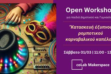 Carnival Workshop για παιδιά “Κατασκευή έξυπνου ρομποτικού καρναβαλικού καπέλου” Patrinorama Magazine·24 Φεβρουαρίου, 2025Carnival Workshop για παιδιά! “Κατασκευή έξυπνου ρομποτικού καρναβαλικού καπέλου” Το coLab σας προσκαλεί σε ένα ξεχωριστό καρναβαλικό workshop,...ΕΚΔΗΛΩΣΕΙΣ