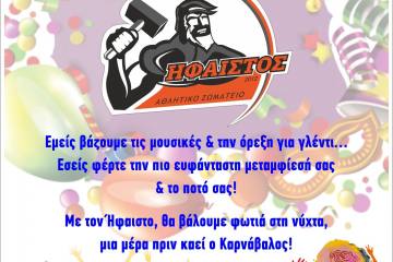 Καρναβαλικό Ξεφάντωμα με τον Α.Σ. Ήφαιστο στα Παλαιά Σφαγεία Patrinorama Magazine·24 Φεβρουαρίου, 2025ΚΑΡΝΑΒΑΛΙΚΟ ΞΕΦΑΝΤΩΜΑ ΜΕ ΤΟΝ Α.Σ. ΗΦΑΙΣΤΟ Εμείς βάζουμε τις μουσικές και την όρεξη για γλέντι…Εσείς φέρτε την πιο...ΕΚΔΗΛΩΣΕΙΣ