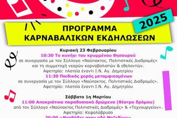 Το πρόγραμμα των καρναβαλικών εκδηλώσεων του Δήμου Ναυπακτίας Patrinorama Magazine·19 Φεβρουαρίου, 2025Απόκριες στην Ναύπακτο! Το πρόγραμμα των εκδηλώσεων του Δήμου Ναυπακτίας Ο Δήμος Ναυπακτίας προσκαλεί όλες και όλους στις...Δυτική ΕλλάδαΕΚΔΗΛΩΣΕΙΣΠολιτισμός