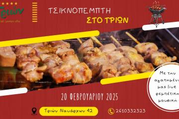 Τσικνοπέμπτη στο Τριών Patrinorama Magazine·19 Φεβρουαρίου, 2025Τσικνοπέμπτη χωρίς τσίκνισμα γίνεται; ΔΕ ΓΙΝΕΤΑΙ! Ελάτε να γιορτάσουμε μαζί με λαχταριστά κρέατα στα κάρβουνα, ζωντανή ρεμπέτικη μουσική...ΕΚΔΗΛΩΣΕΙΣ