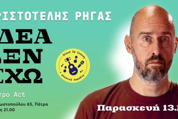 Αριστοτέλης Ρήγας stand up comedy “Ιδέα δεν έχω” στο Θέατρο Act Patrinorama Magazine·9 Δεκεμβρίου, 2024Αριστοτέλης Ρήγας Stand up comedy & μουσική κωμωδία, ΠΑΤΡΑ “θέατρο act” Eισιτήρια https://tinyurl.com/mvz48a2k Ο Αριστοτέλης Ρήγας, δημιουργός της...ΕΚΔΗΛΩΣΕΙΣ