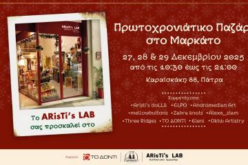 Πρωτοχρονιάτικο Παζάρι στο Μαρκάτο στις 27-29 Δεκεμβρίου Patrinorama Magazine·26 Δεκεμβρίου, 2025Το ARiSTi’s LAB σας προσκαλεί σε ένα πρωτοχρονιάτικο παζάρι γεμάτο ζεστασιά, δημιουργία και γιορτινή διάθεση. Σε έναν χώρο...Δυτική ΕλλάδαΕΚΔΗΛΩΣΕΙΣΠολιτισμός