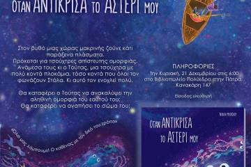 Διαδραστική παρουσίαση του παιδικού βιβλίου «Όταν αντίκρισα το αστέρι μου» της Νεφέλης Μοσχόβου στο Πολύεδρο Patrinorama Magazine·18 Δεκεμβρίου, 2025Διαδραστική παρουσίαση του παιδικού βιβλίου «Όταν αντίκρισα το αστέρι μου» της Νεφέλης Μοσχόβου, θα γίνει την Κυριακή 21...Δυτική ΕλλάδαΕΚΔΗΛΩΣΕΙΣΠολιτισμός
