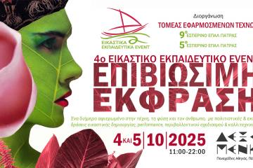 Εικαστικό Εκπαιδευτικό Event «Επι/Βιώσιμη Έκφραση» στη Δεξαμενή Project Patrinorama Magazine·2 Οκτωβρίου, 2025Ο Τομέας Εφαρμοσμένων Τεχνών του 9ου Εσπερινού ΕΠΑΛ Πάτρας (Συντήρηση Έργων Τέχνης) και του 5ου Εσπερινού ΕΠΑΛ Πάτρας...ΕΚΔΗΛΩΣΕΙΣΠολιτισμός