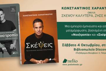 Ομιλία Κωνσταντίνου Χαραντινιώτη “Σκέψου Καλύτερα, Ζήσε Καλύτερα” στο βιβλιοπωλείο Discover Patrinorama Magazine·2 Οκτωβρίου, 2025Οι Εκδόσεις Πεδίο και το βιβλιοπωλείο Discover σας προσκαλούν στην ομιλία του Κωνσταντίνου Χαραντινιώτη “Σκέψου Καλύτερα, Ζήσε Καλύτερα”το...ΕΚΔΗΛΩΣΕΙΣΠολιτισμός