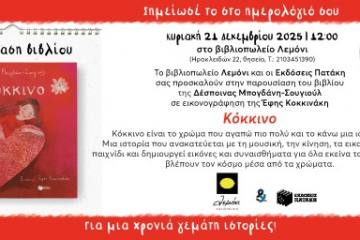 Αθήνα: Παρουσίαση του βιβλίου «Κόκκινο» της Δέσποινας Μπογδάνη-Σουγιούλ στο βιβλιοπωλείο Λεμόνι Patrinorama Magazine·18 Δεκεμβρίου, 2025Παρουσίαση βιβλίου Κυριακή 21 Δεκεμβρίου 2025 | 12:00 στο Βιβλιοπωλείο Λεμόνι(Ηρακλειδών 22, Θησείο, Τ.: 2103451390) Το βιβλιοπωλείο Λεμόνι...ΕΚΔΗΛΩΣΕΙΣΕλλάδαΠολιτισμός