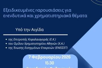 Επενδυτικό Συνέδριο “Επενδύοντας στην Χρηματοοικονομική Παιδεία” στην Πάτρα Patrinorama Magazine·4 Φεβρουαρίου, 2026Ο Σύνδεσμος Επενδυτών & Διαδικτύου σας προσκαλεί στη Γ’ φάση του 23ου Επενδυτικού & Χρηματιστηριακού Συνεδρίου, που διοργανώνει,...Δυτική ΕλλάδαΕΚΔΗΛΩΣΕΙΣΕΠΙΧΕΙΡΗΣΕΙΣ