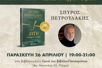 Ο Σπύρος Πετρουλάκης υπογράφει το νέο του βιβλίο <<ΑΥΓΗ, το θαμμένο τετράδιο>> την Παρασκευή 26 Απριλίου Patrinorama Magazine·25 Απριλίου, 2024To βιβλιοπωλείο Γωνιά του βιβλίου-Παπαχρίστου και oι εκδόσεις Μίνωας σας προσκαλούν την Παρασκευή 26 Απριλίου και ώρα 19:00 – 21:00 σε μια συνάντηση με τον συγγραφέα Σπύρου...ΠαρουσιάσειςΠολιτισμός
