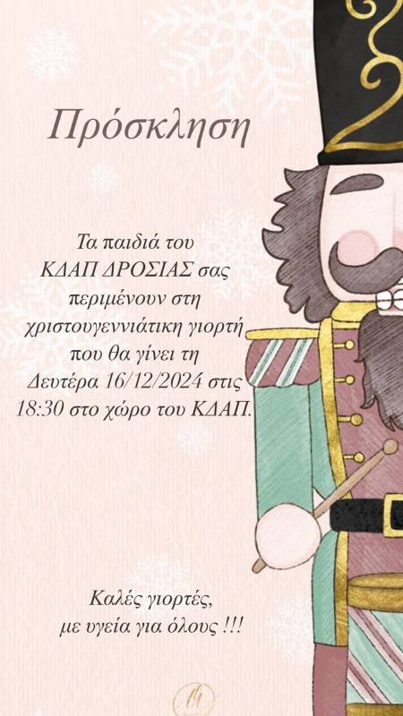 Τα παιδιά του ΚΔΑΠ ΔΡΟΣΙΑΣ σας περιμένουν στη χριστουγεννιάτικη γιορτή που θα γίνει τη Δευτέρα 16/12 στις 18.30 στο χώρο του ΚΔΑΠ (())