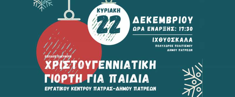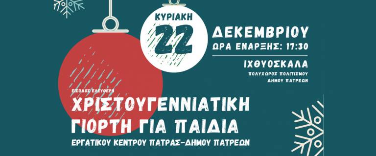 Το Εργατοϋπαλληλικό Κέντρο Πάτρας σε συνεργασία με τον Δήμο Πατρέων διοργανώνει μια μαγική Χριστουγεννιάτικη εκδήλωση για παιδιά, γεμάτη χαρά, δημιουργία και έκφραση αλληλεγγύης!