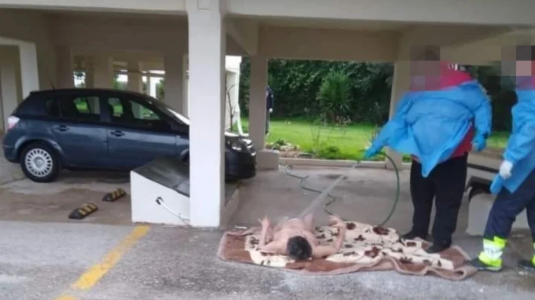 Δύο νοσηλευτές από ασθενοφόρο εμφανίζονται να «πλένουν» με λάστιχο μια γυναίκα γυμνή πάνω σε μια κουβέρτα. Όλα αυτά σε κοινή θέα στην πυλωτή μιας πολυκατοικίας. Πρόκειται για νοσηλευτές που δεν ανήκουν στο ΕΚΑΒ, αλλά είναι μέλη πληρώματος του δημοτικού ασθενοφόρου, οι οποίοι ανήκουν σε εταιρεία με την οποία έχει σύμβαση ο δήμος Ωρωπού.