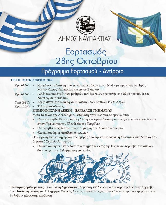 🇬🇷Αναλυτικά τα Προγράμματα της Εθνικής Επετείου στη Ναύπακτο και το Αντίρριο