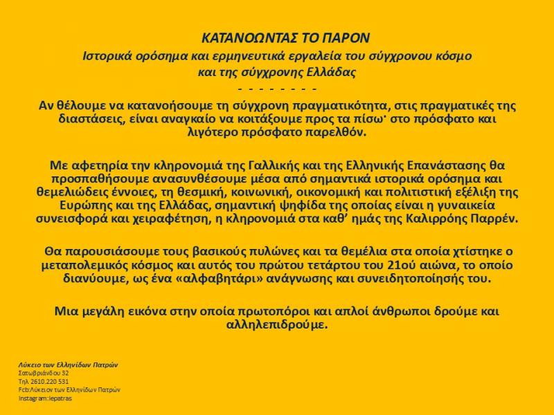 «ΚΑΤΑΝΟΩΝΤΑΣ ΤΟ ΠΑΡΟΝ-Ιστορικά ορόσημα και ερμηνευτικά εργαλεία του σύγχρονου κόσμου και της σύγχρονης Ελλάδας».