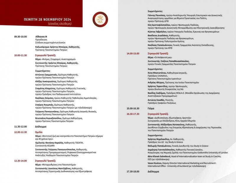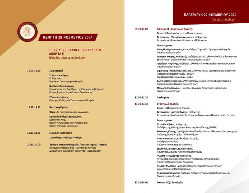 Επετειακό Συνέδριο 60 Χρόνια Πανεπιστήμιο Πατρών 28 και 29 Νοεμβρίου 2024