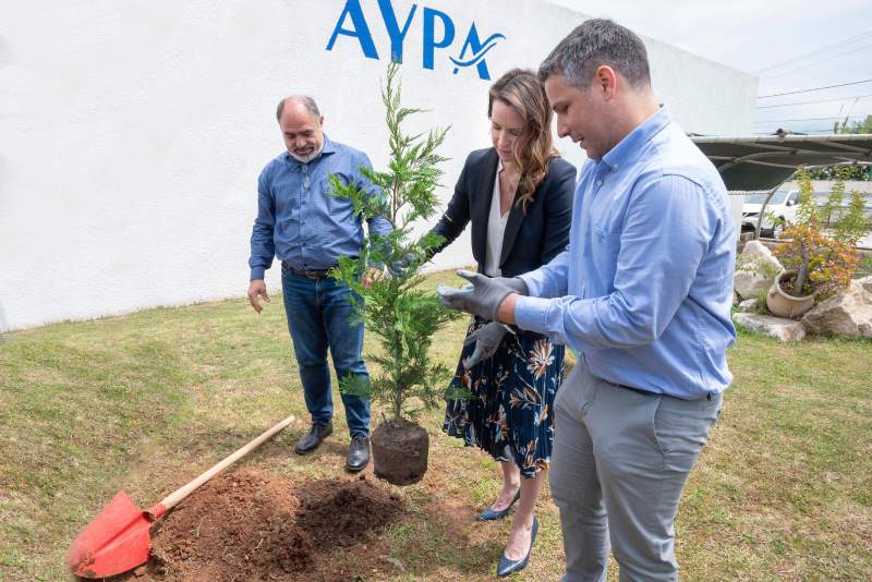 Στο πλαίσιο της εκδήλωσης για την ανακοίνωση του στόχου να γίνει το εργοστάσιο κλιματικά ουδέτερο, υλοποιήθηκε συμβολική δενδροφύτευση στον προαύλιο χώρο του εργοστασίου.