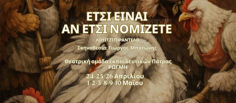 «Έτσι είναι, αν έτσι νομίζετε» του Λουίτζι Πιραντέλο από τη θεατρική ομάδα εκπαιδευτικών Πάτρας ΡΩΓΜΗ στο θέατρο Επίκεντρο+