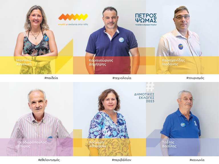 Επιπλέον έξι νέους υποψήφιους με τη δημοτική παράταξη σπιράλ ανακοινώνει ο υποψήφιος Δήμαρχος Πατρέων, Πέτρος Ψωμάς, οι οποίοι εντάσσονται στο ψηφοδέλτιο του συνδυασμού διεκδικώντας την ψήφο των Πατρινών, στις επερχόμενες αυτοδιοικητικές εκλογές της 8ης Οκτωβρίου.