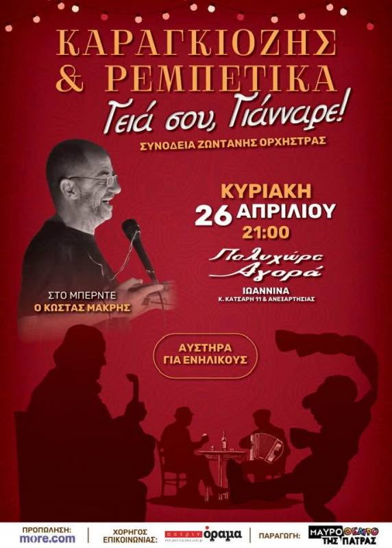 Στον μπερντέ, ο Κώστας Μακρής δίνει ζωή στις φιγούρες, μεταφέροντας το κοινό σε μια άλλη εποχή, γεμάτη αυθεντικότητα και λαϊκό χιούμορ.