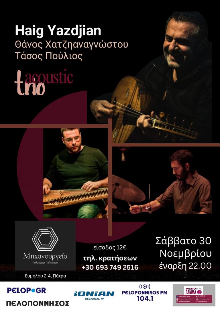 Haig Yazdjian Acoustic Trio στο Μηχανουργείο – Πολυχώρος Πολιτισμού (Πάτρα)