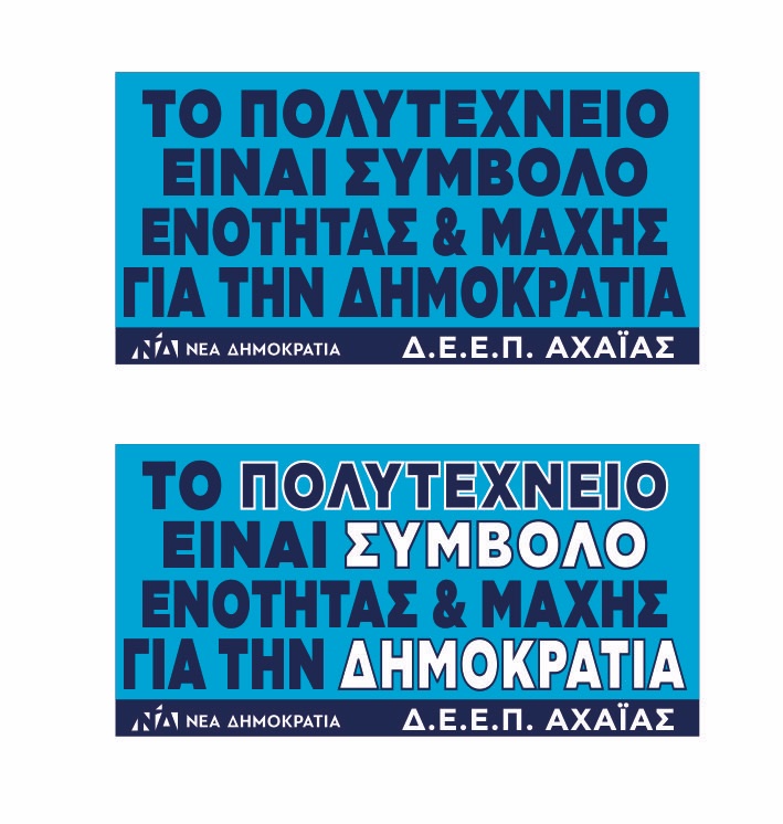 Η Διοικούσα Επιτροπή Εκλογικής Περιφέρειας Αχαΐας της Νέας Δημοκρατίας σε μήνυμά της για την 52 η επέτειο από την εξέγερση του Πολυτεχνείου υπογραμμίζει :