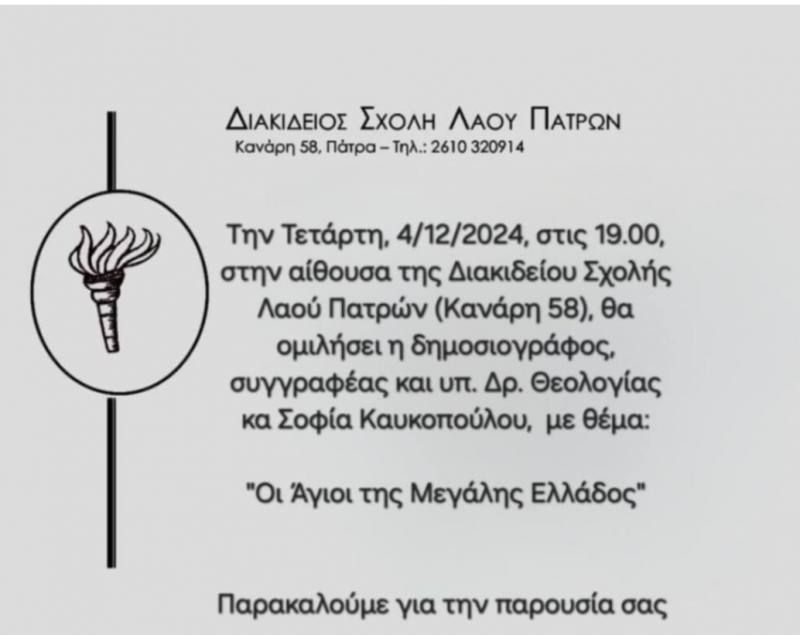 Η δημοσιογράφος Δρ. Θεολογίας Σοφία Καυκοπούλου θα μιλήσει στην Διακίδειο