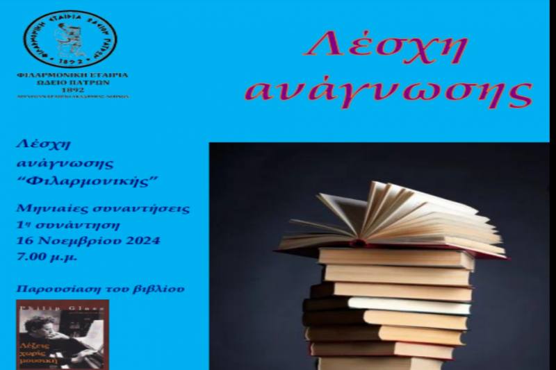 Η Φιλαρμονική Εταιρία Ωδείο Πατρών αποκτά Λέσχη Ανάγνωσης.