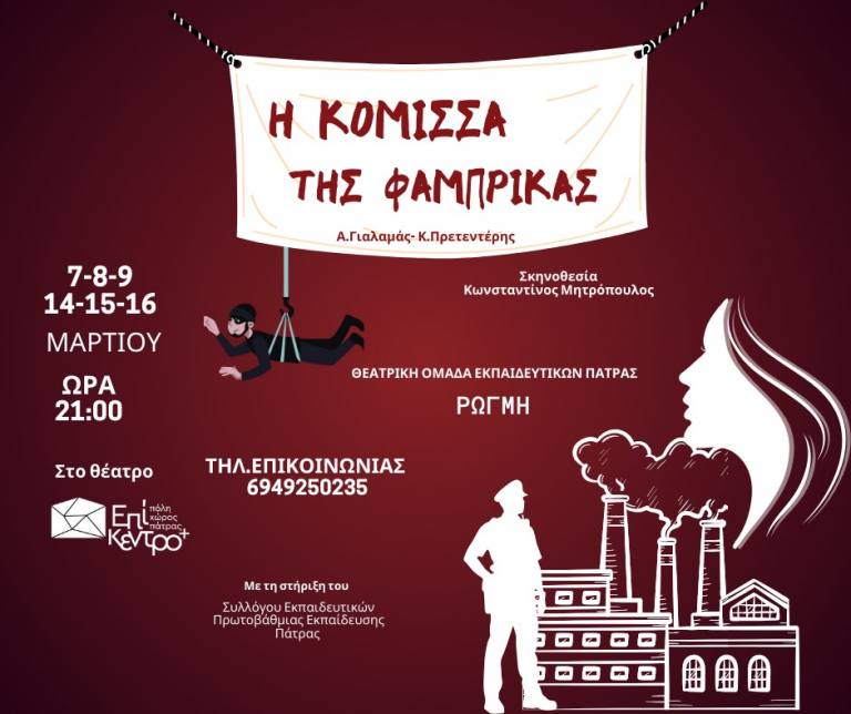 Μετά τη μεγάλη επιτυχία που σημείωσε, τον περασμένο Οκτώβρη, η παράσταση “Η κόμισσα της φάμπρικας” από την θεατρική ομάδα εκπαιδευτικών Πάτρας “Ρωγμή”, επαναλαμβάνεται για έξι ακόμα παραστάσεις στο θέατρο Επίκεντρο.