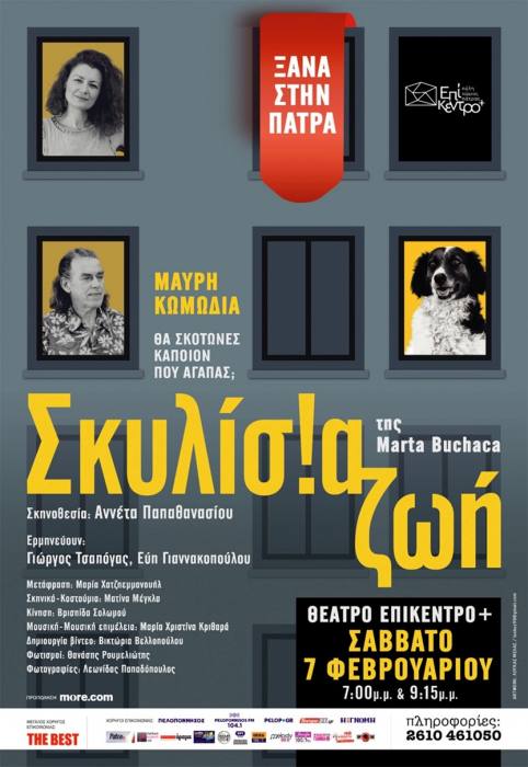 Η μαύρη κωμωδία «Σκυλίσια ζωή» της Μάρτα Μπουτσάκα σε σκηνοθεσία Αννέτας Παπαθανασίου επιστρέφει στην Πάτρα το Σάββατο 7 Φεβρουαρίου με διπλή παράσταση.
