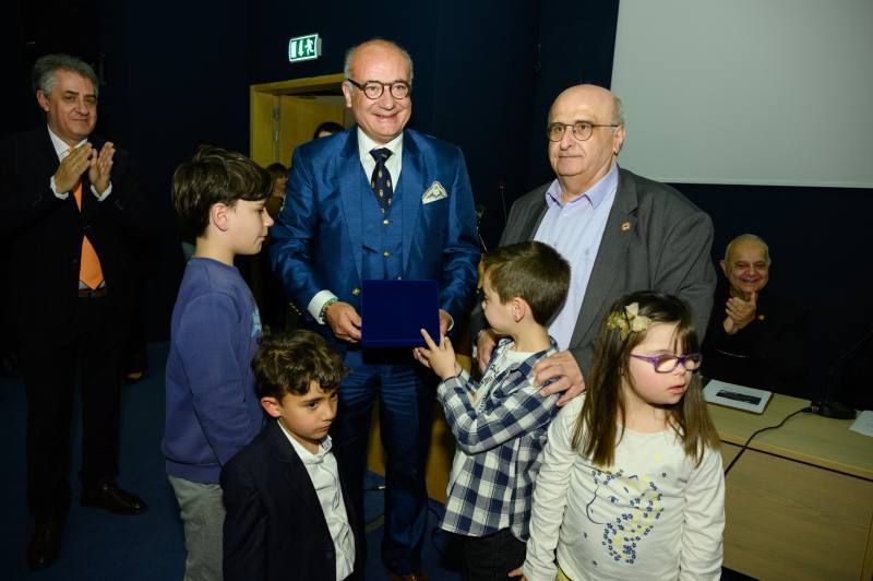 Η πιο συγκλονιστική στιγμή της βραδιάς ήρθε όταν ο Πρύτανης του Πανεπιστημίου Πατρών καθηγητής Χρήστος Ι. Μπούρας μαζί με τους λιλιπούτειους ασθενείς, παιδιά στα οποία ο Αυξέντιος Καλαγκός χάρισε κυριολεκτικά μια δεύτερη ζωή, του απένειμαν τιμητική πλακέτα. Το κοινό παρακολουθούσε βαθιά συγκινημένο, με δάκρυα στα μάτια και ρίγη σεβασμού. Είναι η στιγμή που όλοι κατάλαβαν πως μπροστά τους δεν βρισκόταν απλώς ένας κορυφαίος επιστήμονας, αλλά ένας άνθρωπος που νίκησε τον πόνο με τα ίδια του τα χέρια.