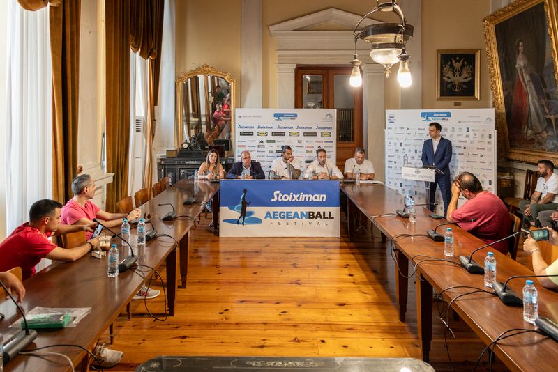 Η σπουδαία γιορτή του μπάσκετ, μετά το πρόσφατο sold out που έκανε στις εγγραφές της, πραγματοποίησε τη συνέντευξη Τύπου της στο εμβληματικό Δημαρχιακό Μέγαρο της Ερμούπολης, παρουσία του εμπνευστή της, του διεθνή μπασκετμπολίστα Γιώργου Πρίντεζη, του Δημάρχου Σύρου-Ερμούπολης, κ. Αλέξανδρου Αθανασίου, του Co-Founder της Progame, κ. Γιάννη Λάσκαρη, του Υπεύθυνου Αγωνιστικού του Stoiximan AegeanBall Festival, κ. Γιάννη Θεολογίτη και της Corporate Responsibility Senior Manager της Kaizen Gaming, κας. Ιωάννας Κοζαδίνου.