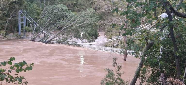 Όπως φαίνεται στο βίντεο που αναρτήθηκε στον λογαριασμό του δήμου Τεμπών στο Facebook τα νερά που γέμισαν την κοιλάδα έφτασαν σχεδόν να καλύψουν την κρεμαστή γέφυρα.