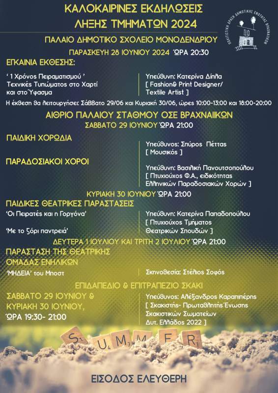 Με ιδιαίτερη χαρά σας προσκαλούμε στις πολιτιστικές εκδηλώσεις με αφορμή τη λήξη των μαθημάτων της φετινής περιόδου, οι οποίες θα πραγματοποιηθούν από τις 28 Ιουνίου έως τις 2 Ιουλίου 2024.