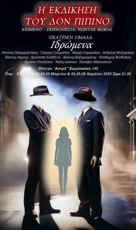 Η θεατρική ομάδα “Ιδρωμενα”έρχεται να σας παρουσιάσει στο θέατρο “Αγορά” , Καραϊσκάκη 149, την ανατρεπτική κωμωδία “Η ΕΚΔΙΚΗΣΗ ΤΟΥ ΔΟΝ ΠΙΠΙΝΟ” . Ο θεατής παρακολουθεί θέατρο μέσα στο θέατρο χωρίς να είναι σίγουρος για τίποτα!