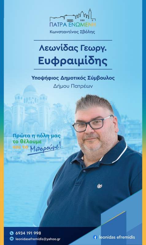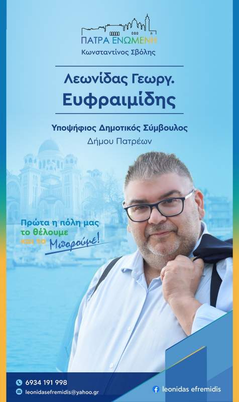 ΛΕΩΝΙΔΑΣ ΕΥΦΡΑΙΜΙΔΗΣ: Υποψήφιος δημοτικός σύμβουλος με την παράταξη του Κώστα Σβόλη «Πάτρα Ενωμένη»