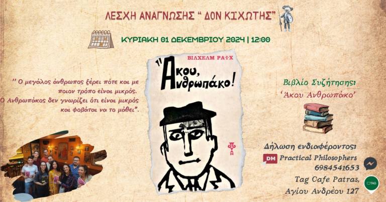 Η λέσχη ανάγνωσης “Δον Κιχώτης”, σε προσκαλεί να διαβάσεις το “Άκου Ανθρωπάκο”, του Wilhelm Reich.